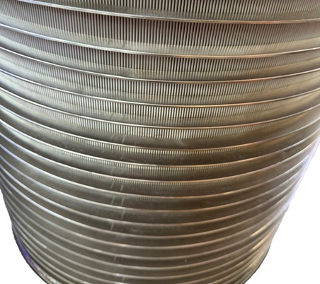 The wedge-shaped tube is made during the process of simultaneously winding a specially formed working line on a spiral and welding them to a load line placed along the tube. This technology allows the production of wedge screens when very high gap precision and shielding resistance are required. Thanks to the latest welding technology, we are able to obtain a wide range of distances between the load-bearing lines, with very precise and repeatable clearances, so that the screen can be produced according to the customer's specific requirements.
